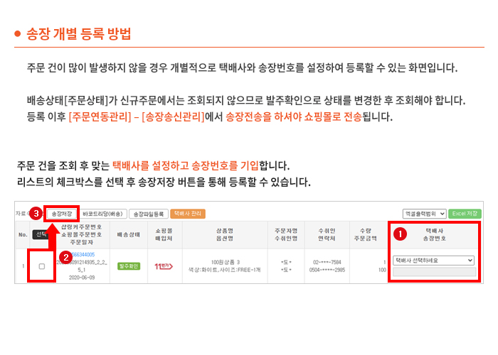 1. 1 [ 샵링커 > 주문수집 ] [송장등록] 송장등록 방법